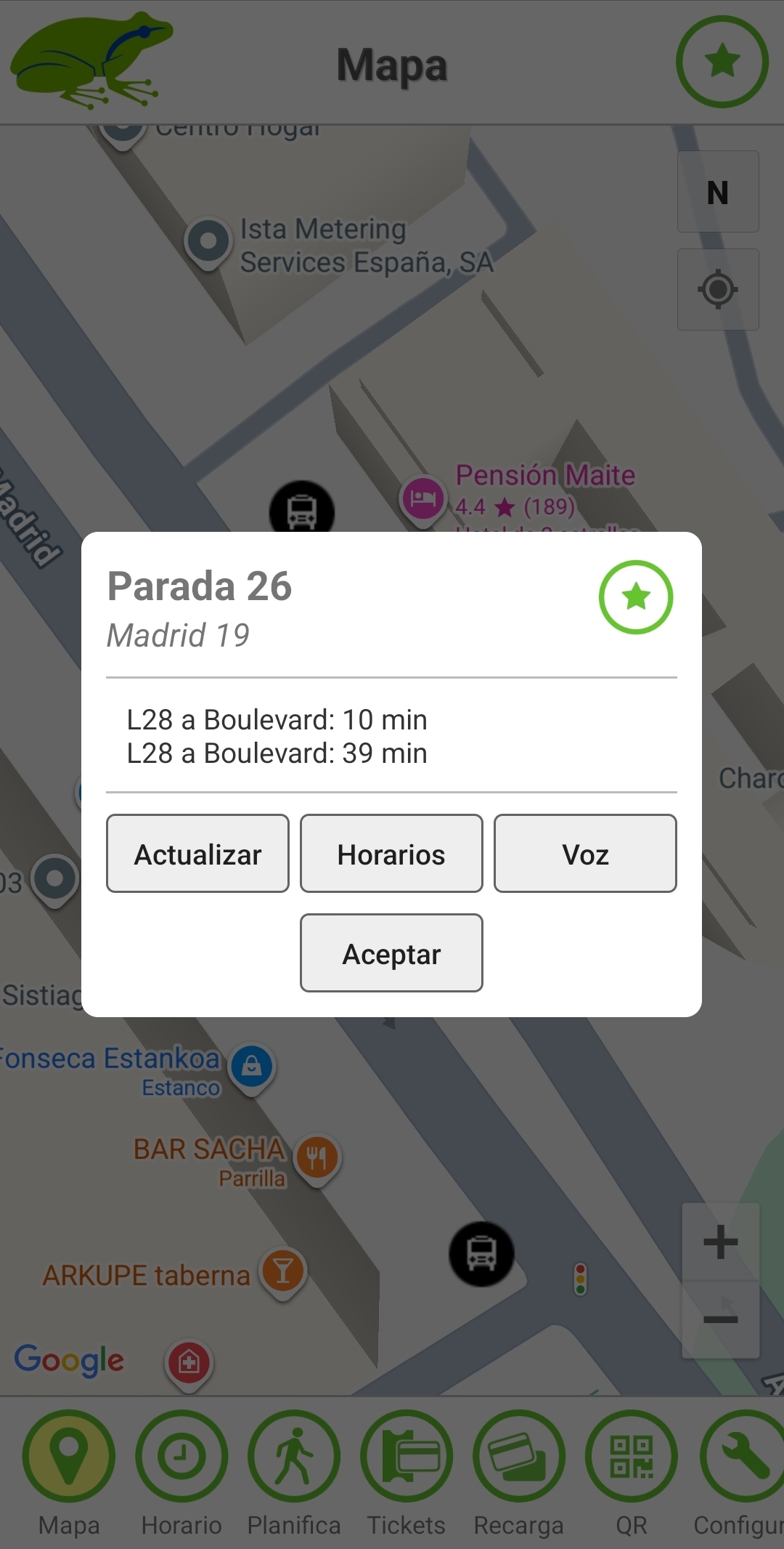 Pero, ¡no temáis! Porque el ayuntamiento ofrece una aplicación para el móvil que da los tiempos de llegada en tiempo real.